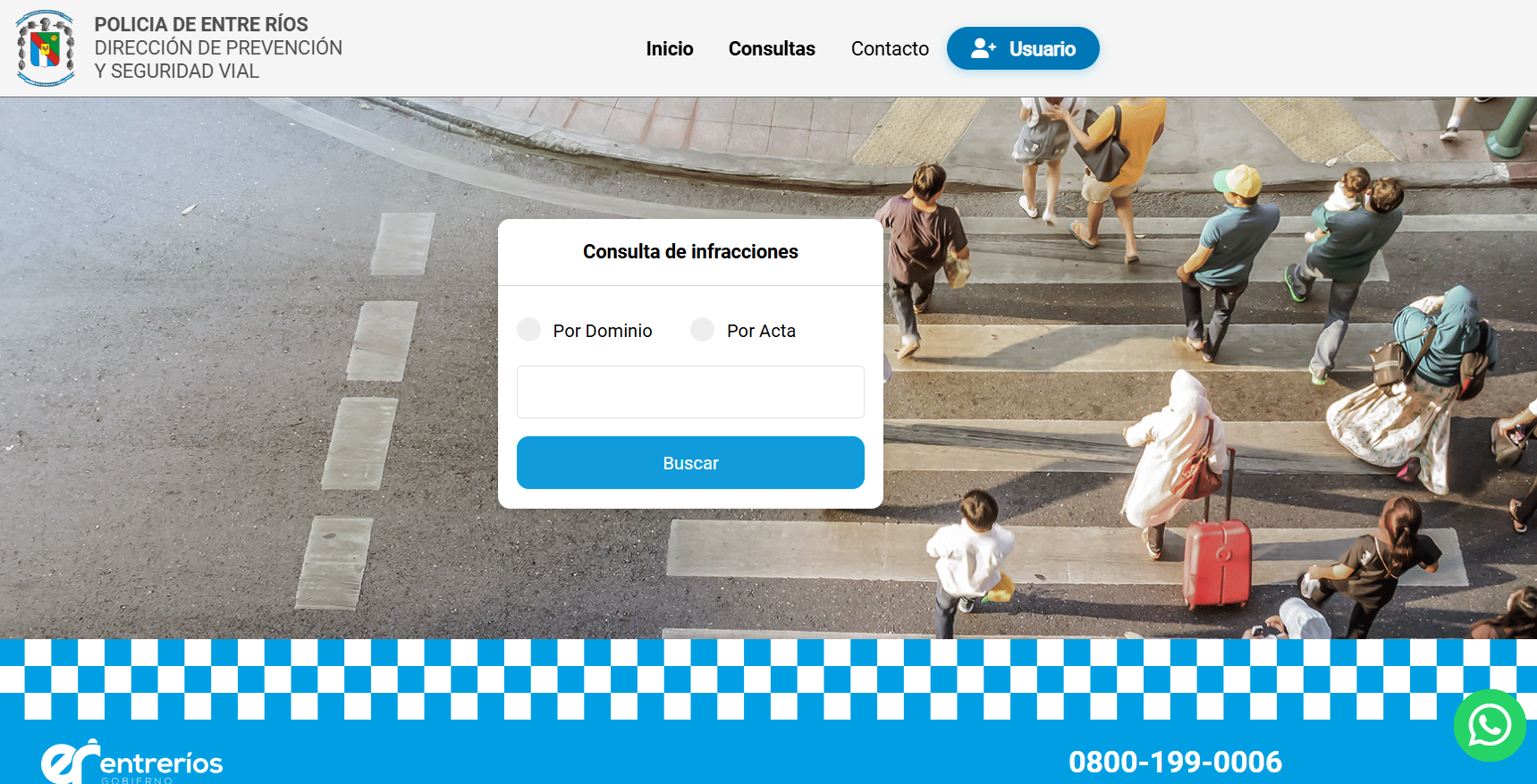 El primer paso es ingresar a la web oficial de infracciones de la Dirección de Prevención y Seguridad Vial de la Policia de Entre Ríos.